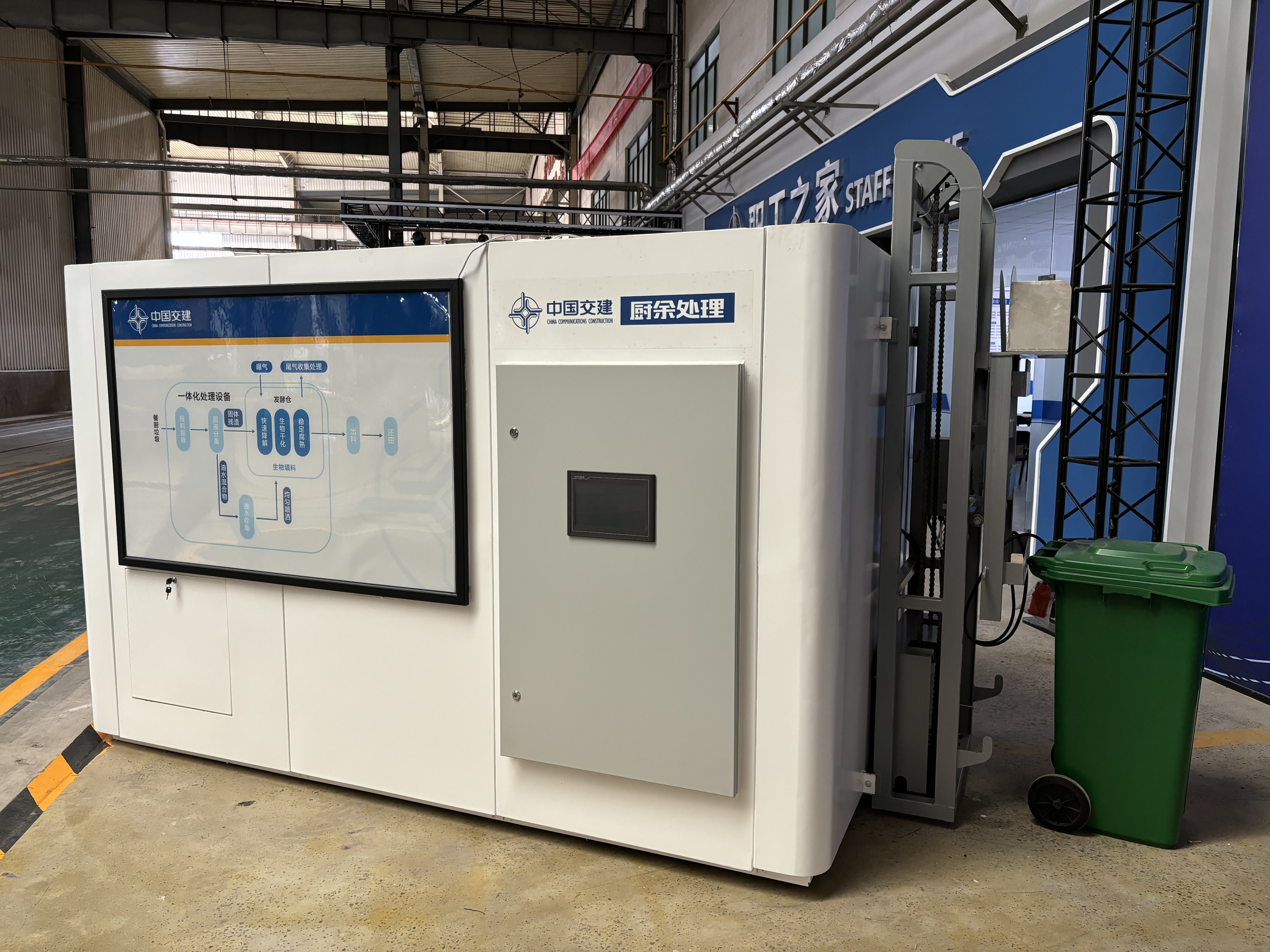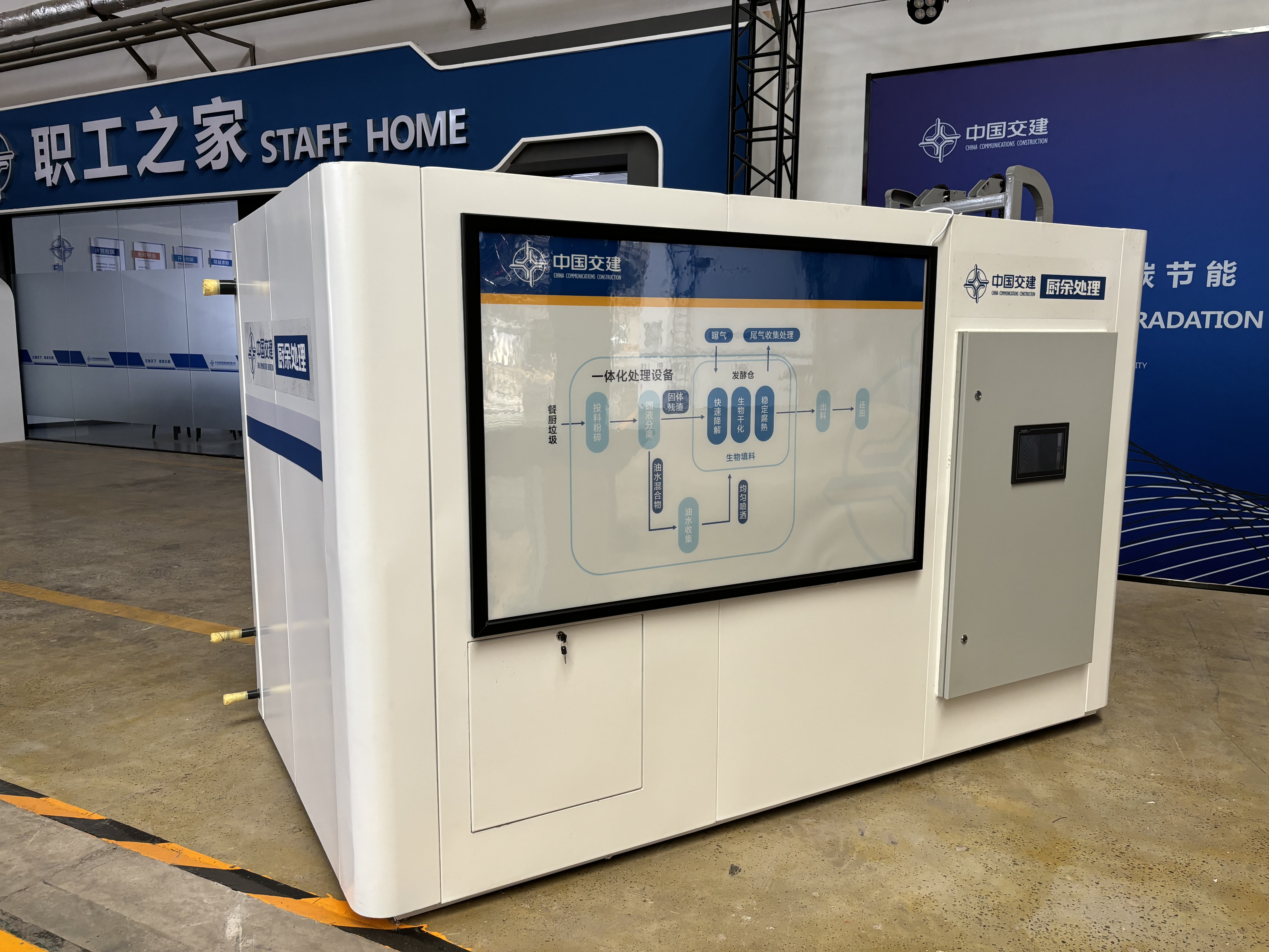 CY100廚余垃圾處理設(shè)備采用全量化處理工藝,無需進(jìn)行油水分離,將廚余垃圾直接投入設(shè)備后,利用油脂快速降解菌等特定功能型生物菌劑,對廚余垃圾進(jìn)行物料干化和腐殖化處理,是一種通過發(fā)酵方式處理廚余垃圾的資源型集成化設(shè)備。